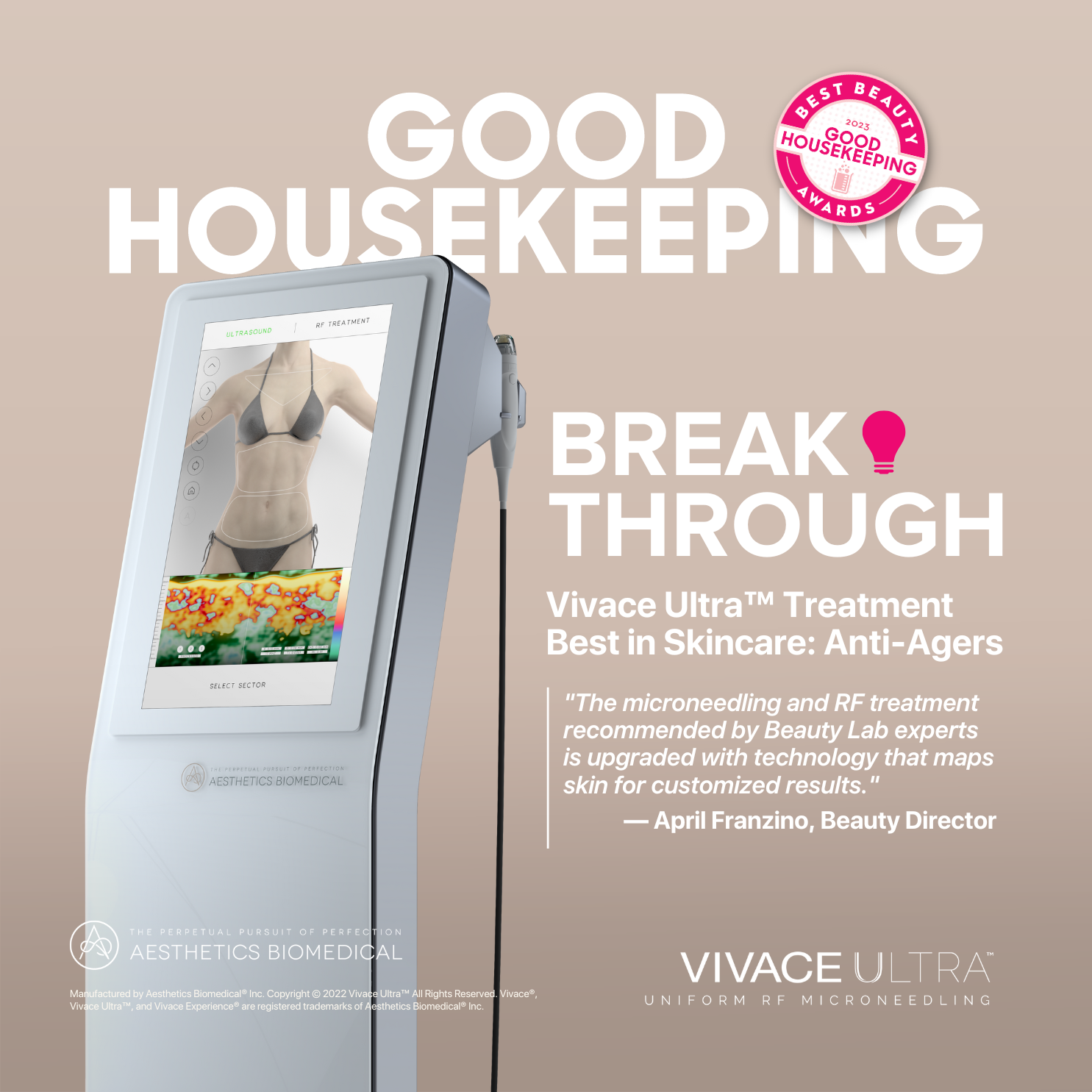 "Good Housekeeping's 2023 Beauty Award For Best Professional Treatment. Vivace, the microneedling and radiofrequency treatment recommended by Beauty Lab experts for smoothing skin and improving its tone (with little or no downtime) is upgraded with technology that maps skin for customized results."