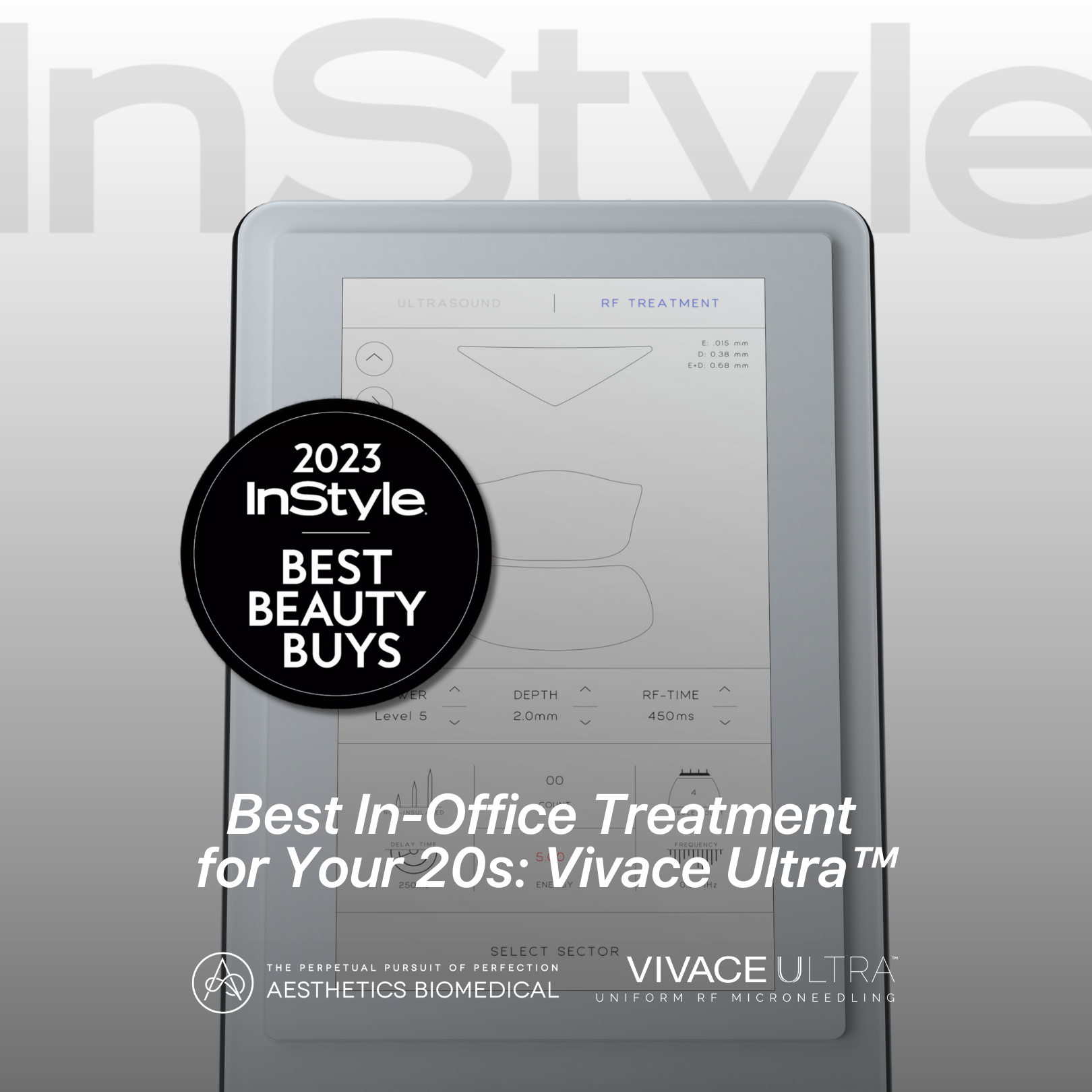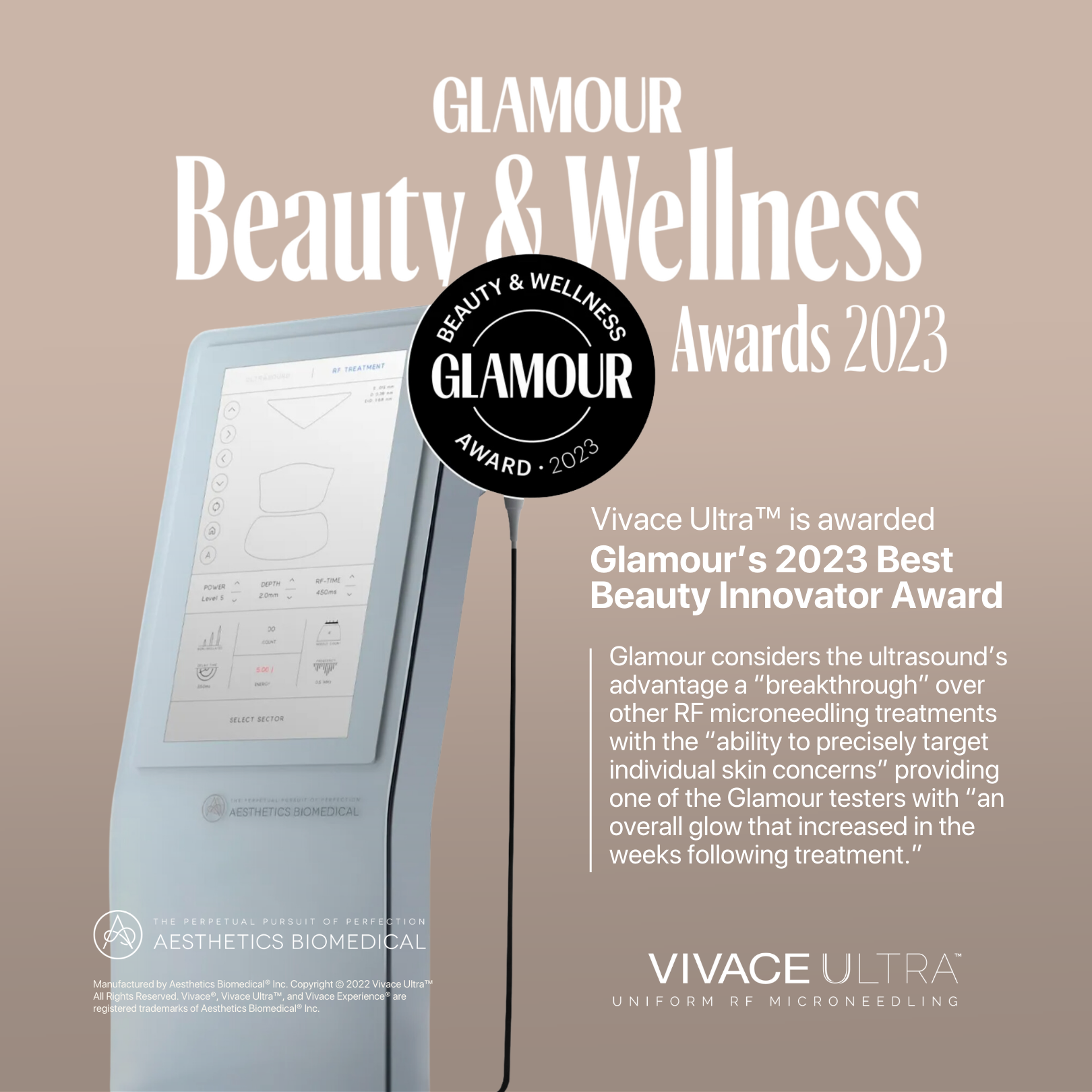 Glamour awards Vivace Ultra™ the newly minted 2023 Best Beauty Innovator Award, for "Best Skin-Tightening Treatment: Vivace Ultra" making it a "game-changing advancement in technology that is making industry waves".